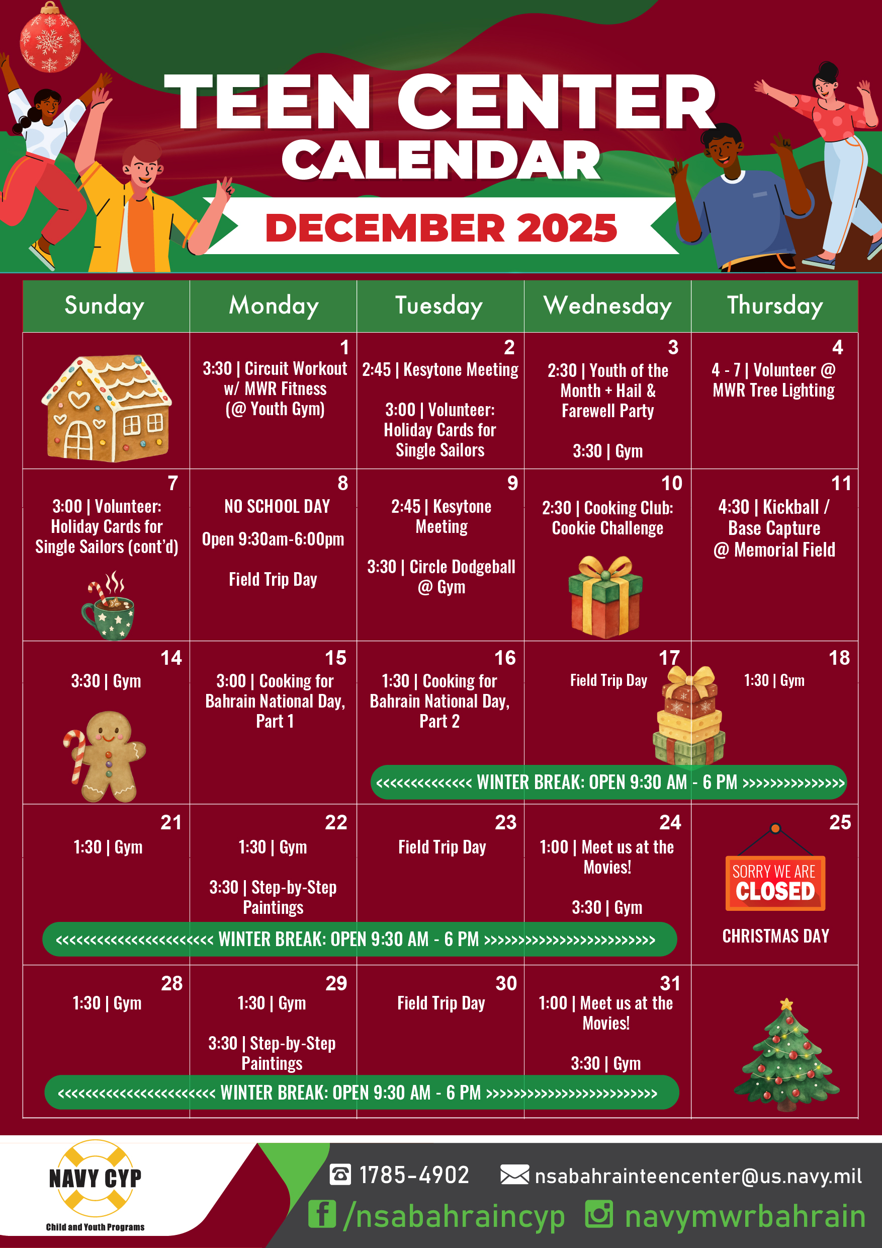 Teen Center December Calendar