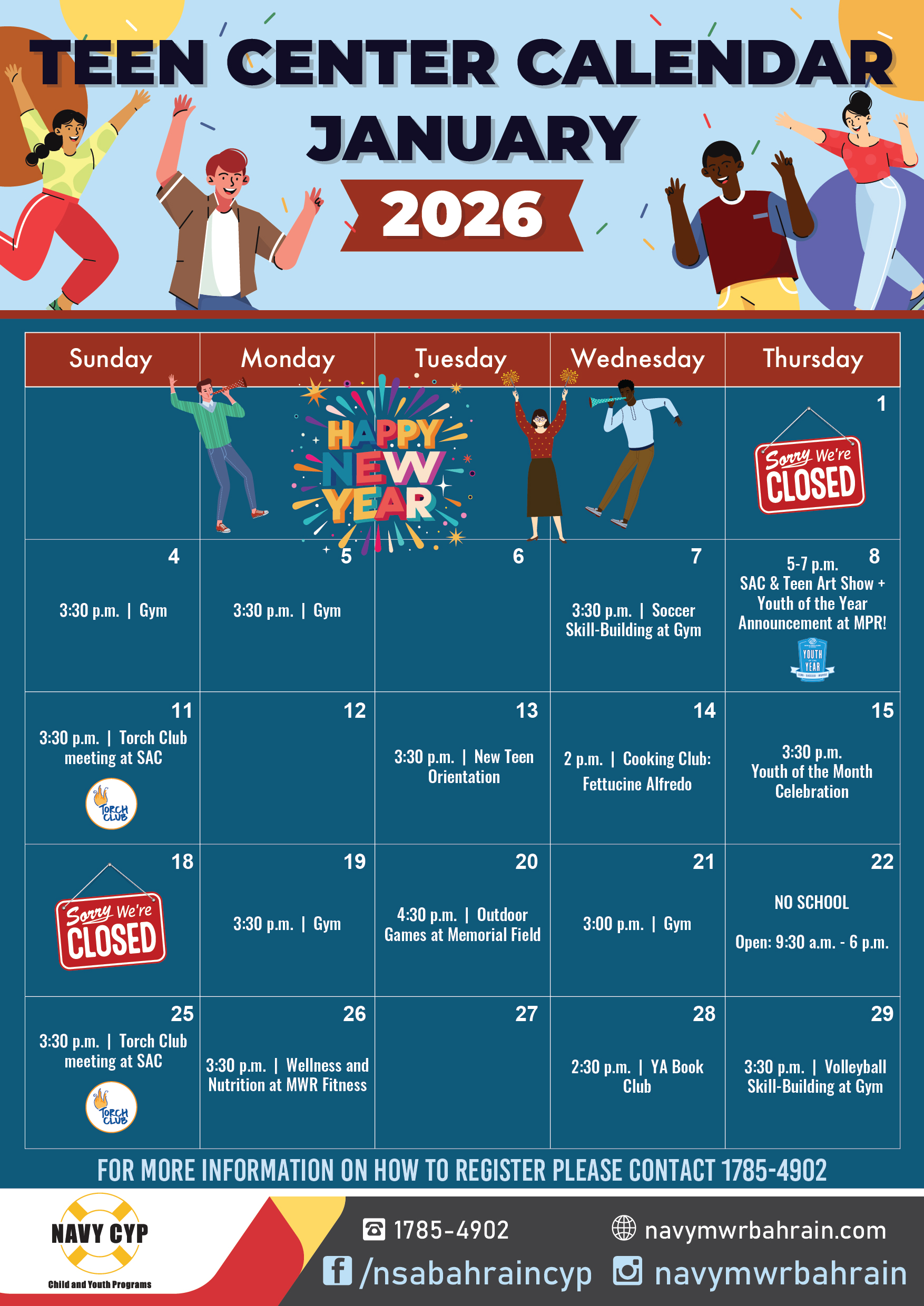 Teen Center January Calendar