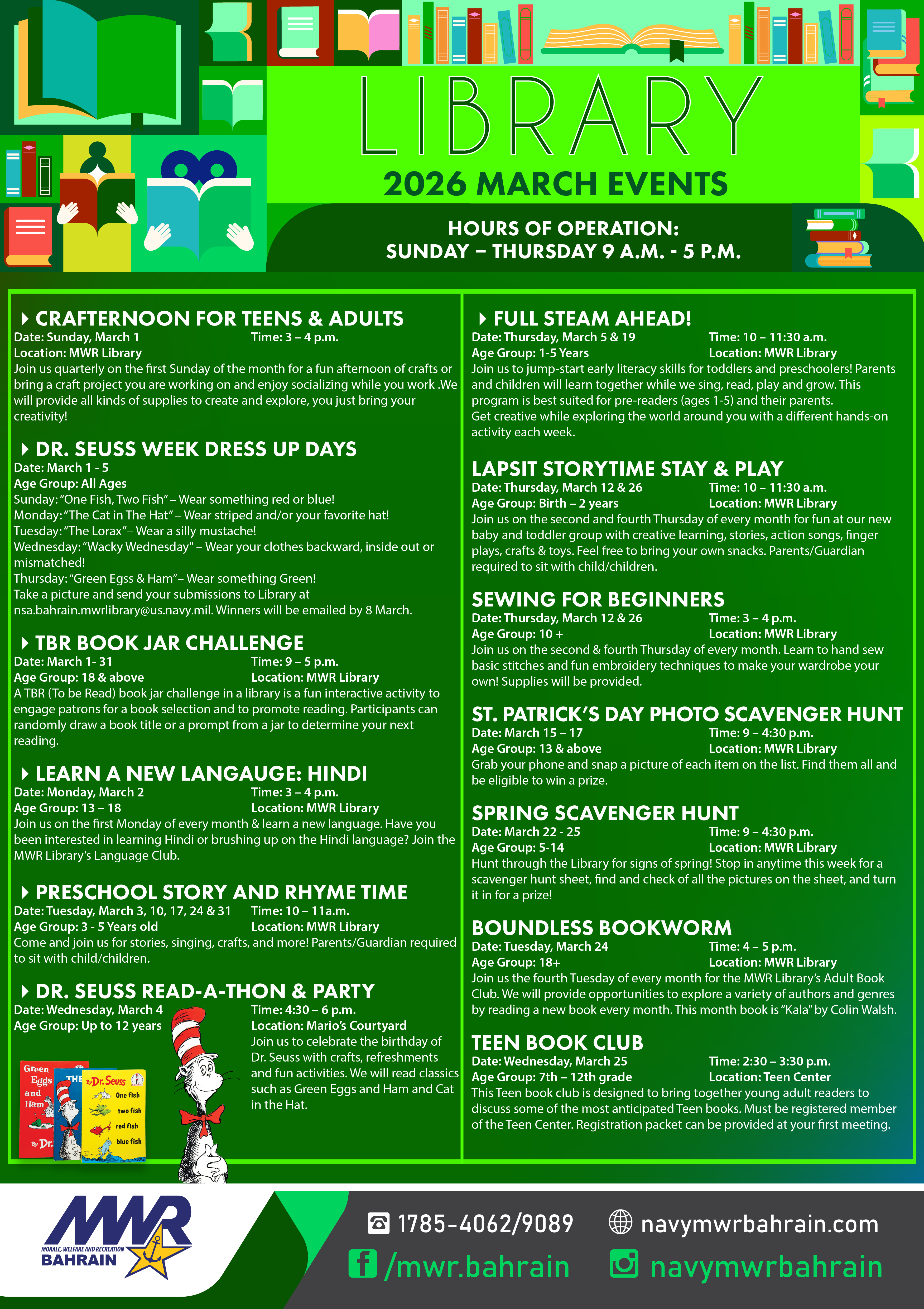 Details: Join the MWR Library for their new baby and toddler group storytime! Enjoy stories, action songs, finger plays, crafts, toys and creative learning.