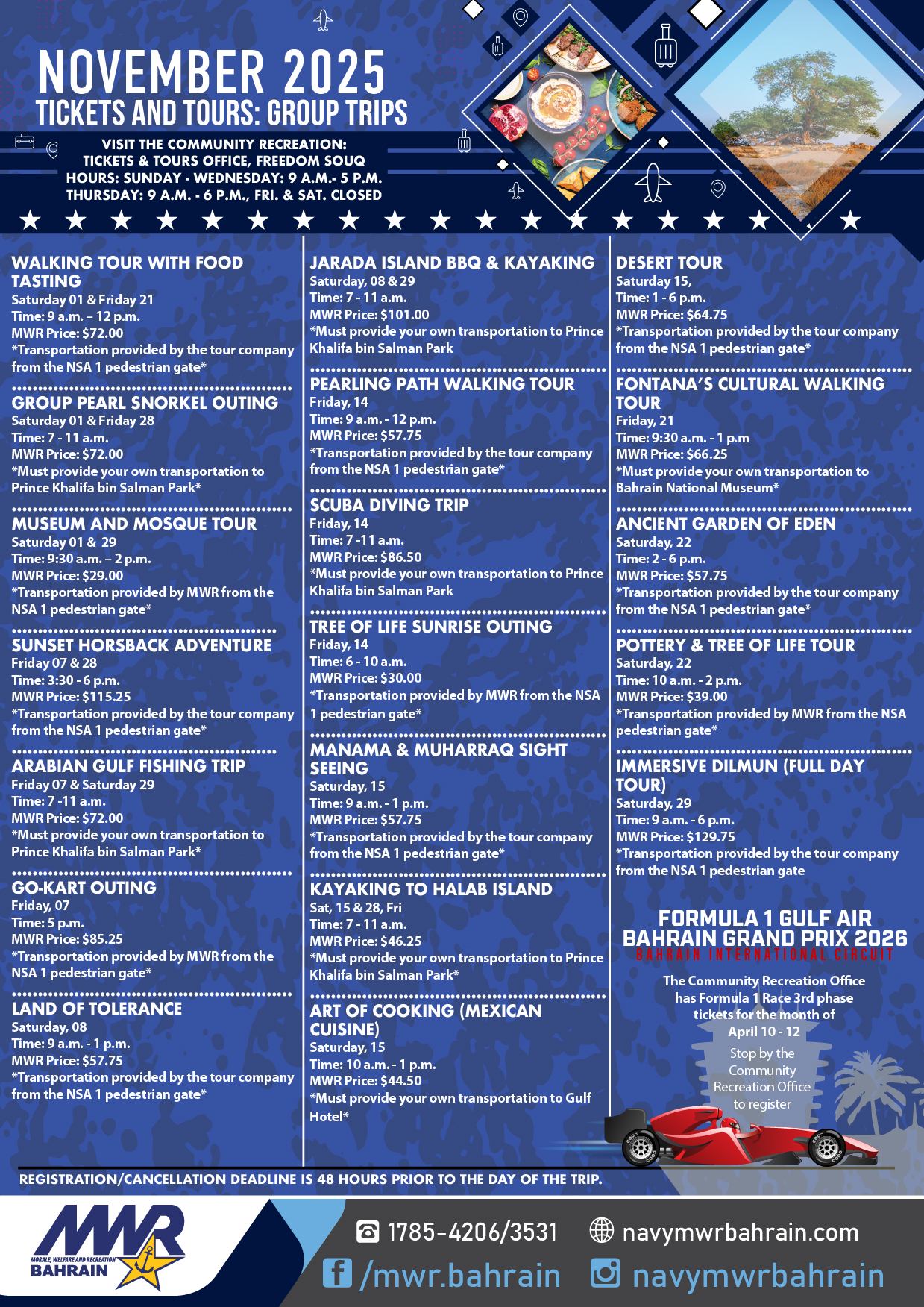 You may purchase tickets at the MWR Community Recreation Office in the Freedom Souq. If you're planning your summer vacation or just want to add a weekend at Disney World onto your next stateside trip, stop by the Community Recreation Office! We offer a wide variety of tickets, including: